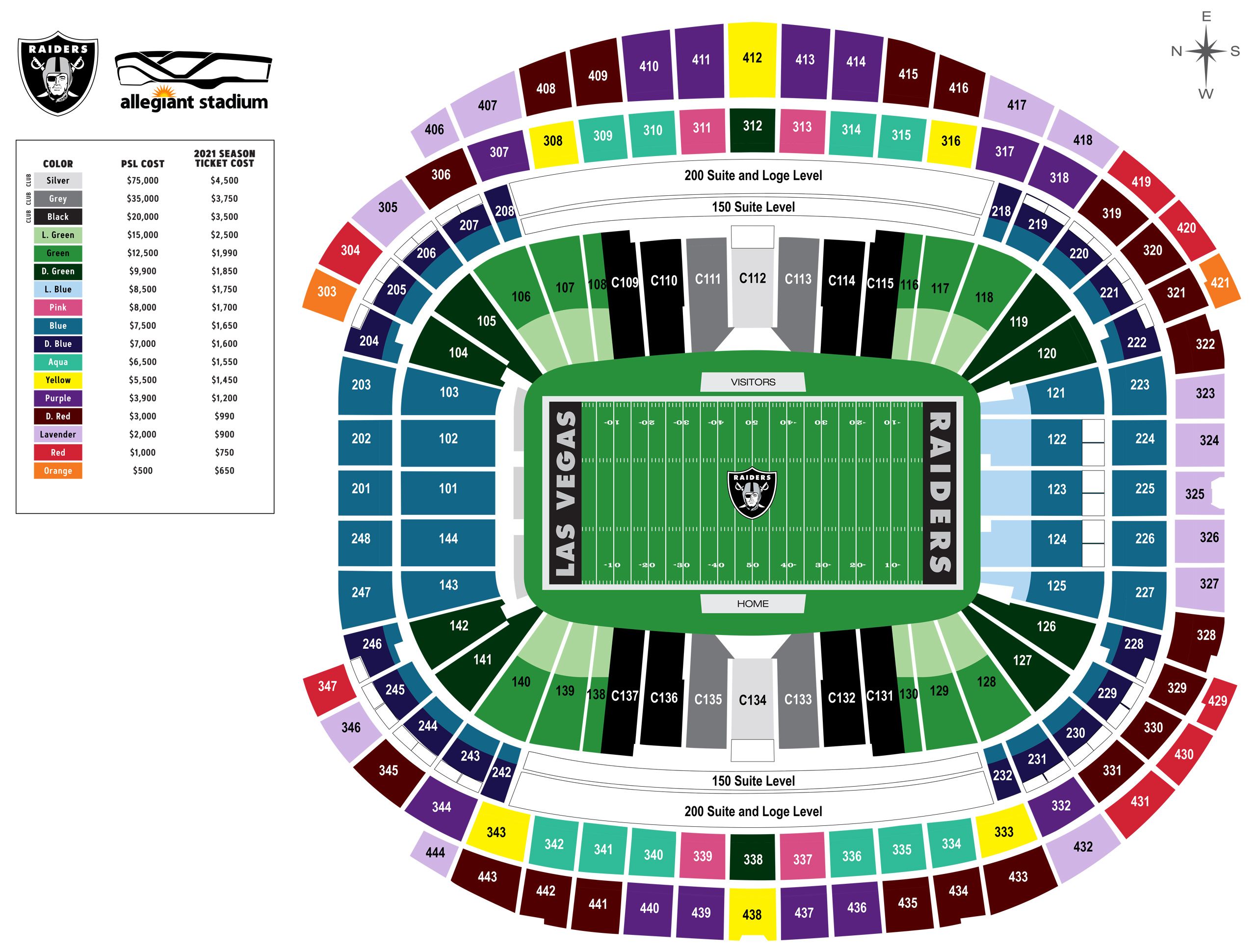 Seating And Pricing Map For Allegiant Stadium Las Vegas Raiders Raiders Com